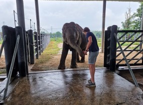 De volgende ochtend begon met een uitgebreide rondleiding door het park. WFFT heeft een enorm terrein, en tijdens de twee uur durende wandeling leerden we over de indrukwekkende verhalen van de geredde dieren. Elk dier in het park heeft een verleden dat vaak schokkend is, maar dankzij de zorg van WFFT hebben ze nu een goed en veilig leven. Het hoogtepunt van de tour was het voeren van twee olifanten – prachtige, sociale dieren die veel indruk op ons maakten.
